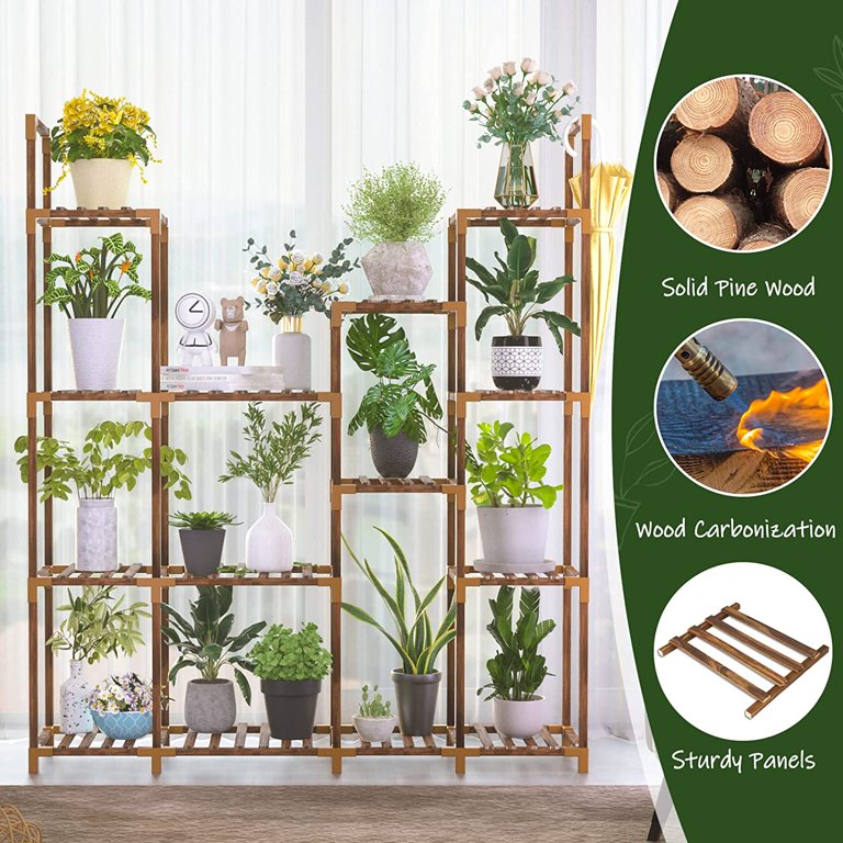 Amazon Com Homkirt Plant Stand Indoor Outdoor 14 Tier Large Corner Plant Stand Tall Plant Shelf Rack Flower Stand For Multiple Plants Wood Plant Holder Ladder Table Display For Patio Garden Balcony Window